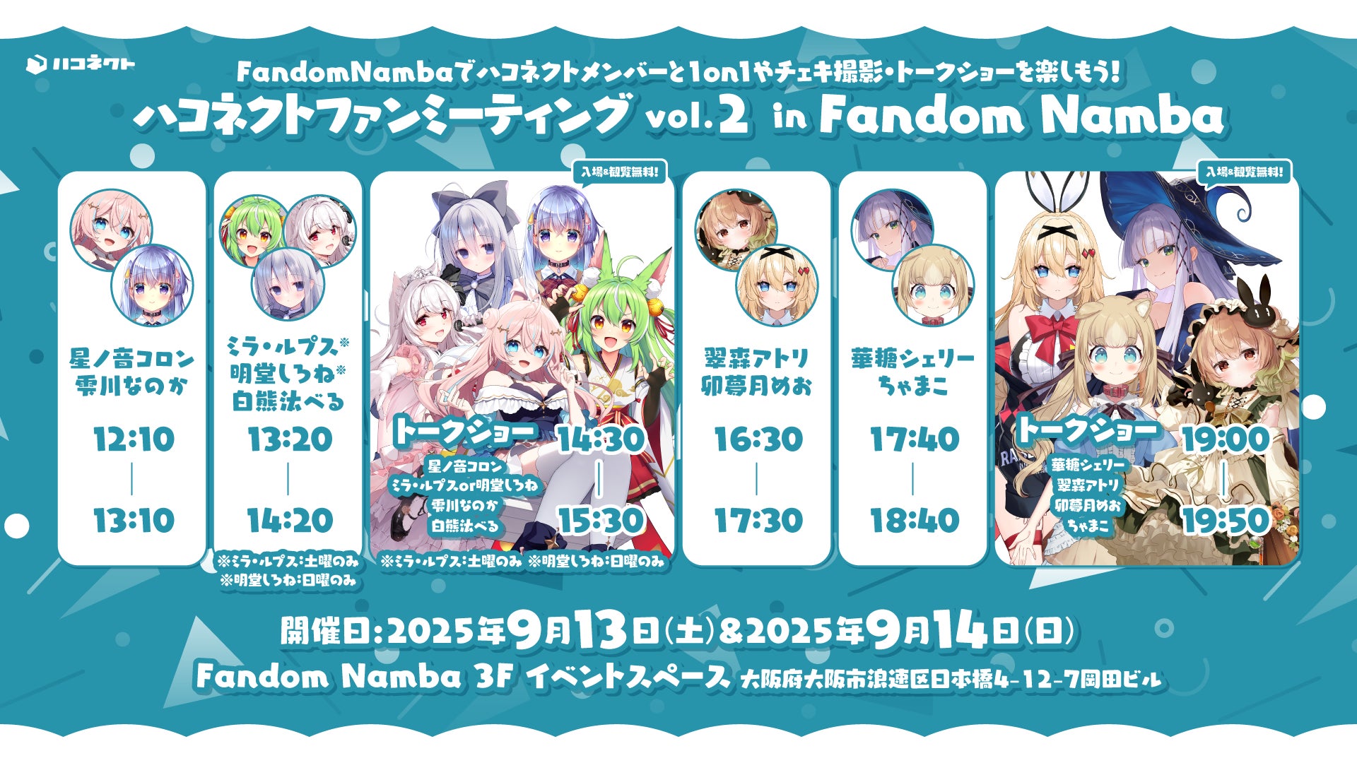 さらに「Fandom Namba」では無料でご参加いただけるトークショーも実施いたします!