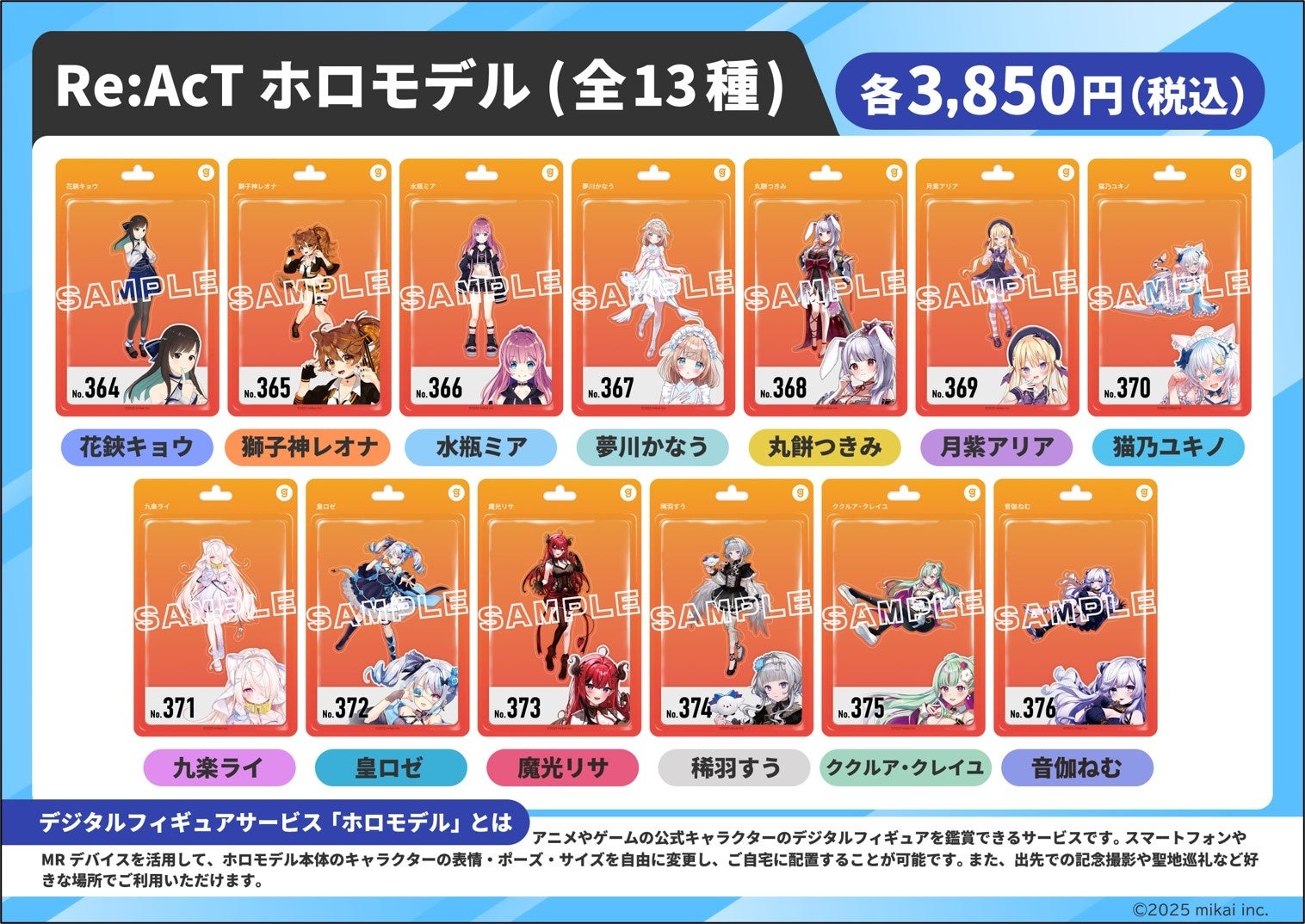 同事務所属の13名のメンバーのデジタルフィギュア「ホロモデル」本体が店頭にて先行発売となります。