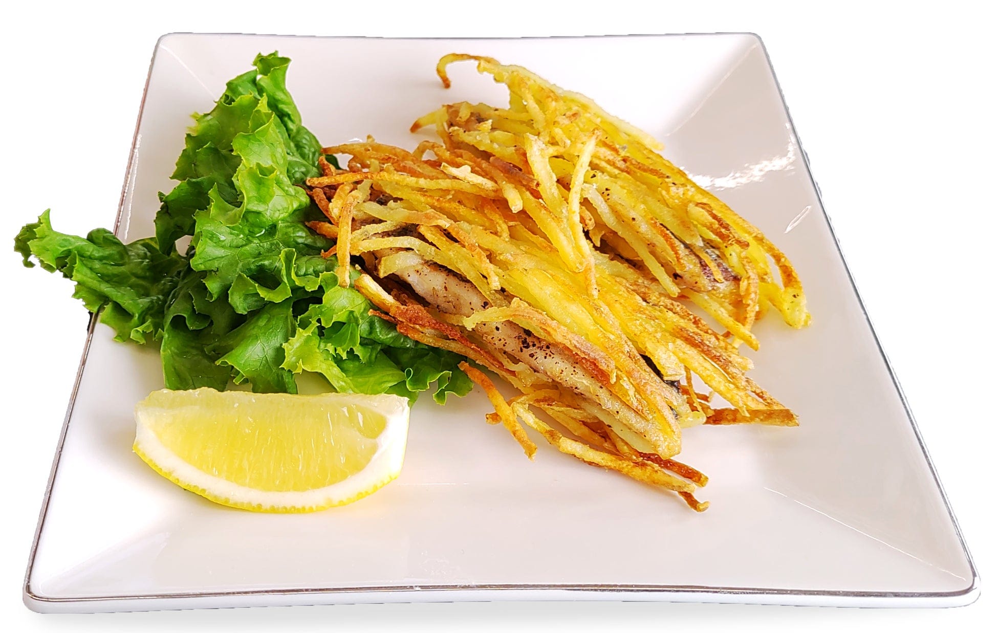 保田漁協自慢の新鮮なマアジを、ジャガイモの細切りを衣にしてカラリと揚げ焼きに。サクサク、ホクホクの新しい食感が楽しめる、カリッ!ふわ!なアジフライの新境地。黄金マアジ渾身の一品です。