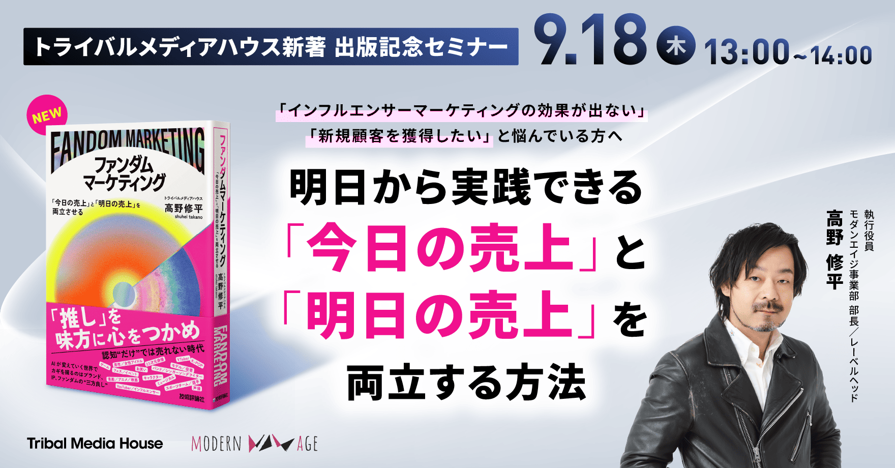 「開拓する。マーケティングの地平と、人と社会が心待ちにしていた喜びを。」をパーパスに掲げるトライバルメディアハウス(本社:東京都中央区、代表取締役社長:池田紀行)は、高野修平(執行役員/Modern Ageレーベルヘッド)による新刊『ファンダムマーケティング~「今日の売上」と「明日の売上」を両立させる~』(技術評論社)を2025年9月12日に発売します。