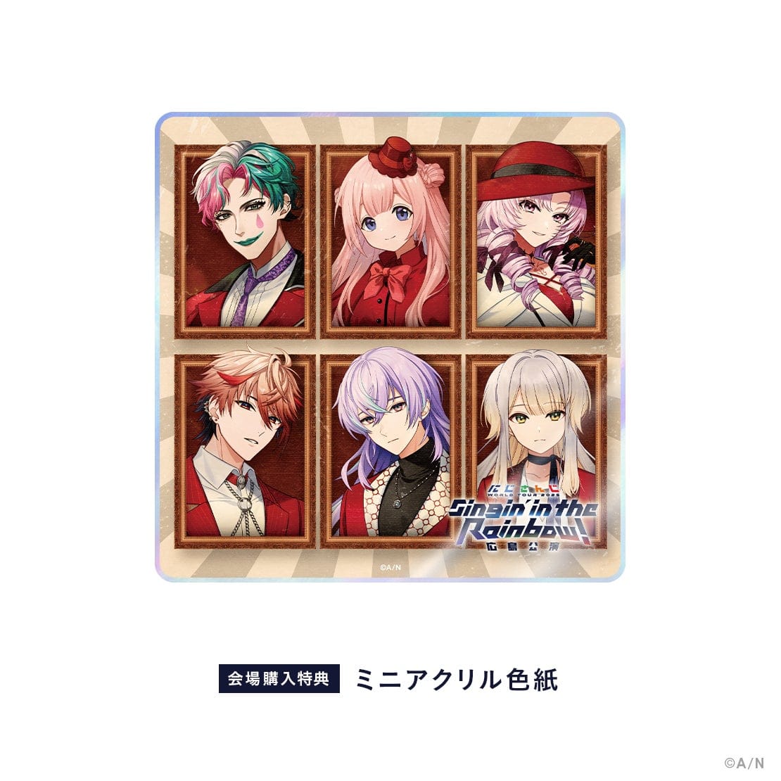「にじさんじ WORLD TOUR 2025 Singin’ in the Rainbow!」ライブツアーグッズ及び広島会場グッズを広島公演会場にて税込4,000円以上ご購入いただいたお客様に 「ミニアクリル色紙」をプレゼントいたします。