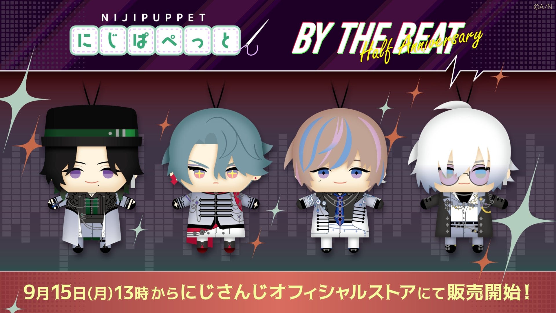 「BY THE BEAT Half Anniversary にじぱぺっと」は、2025年9月15日(月)13時(JST)から、にじさんじオフィシャルストア(https://shop.nijisanji.jp)とNIJISANJI EN Official Store(https://nijisanji-store.com)にて販売を開始いたします。