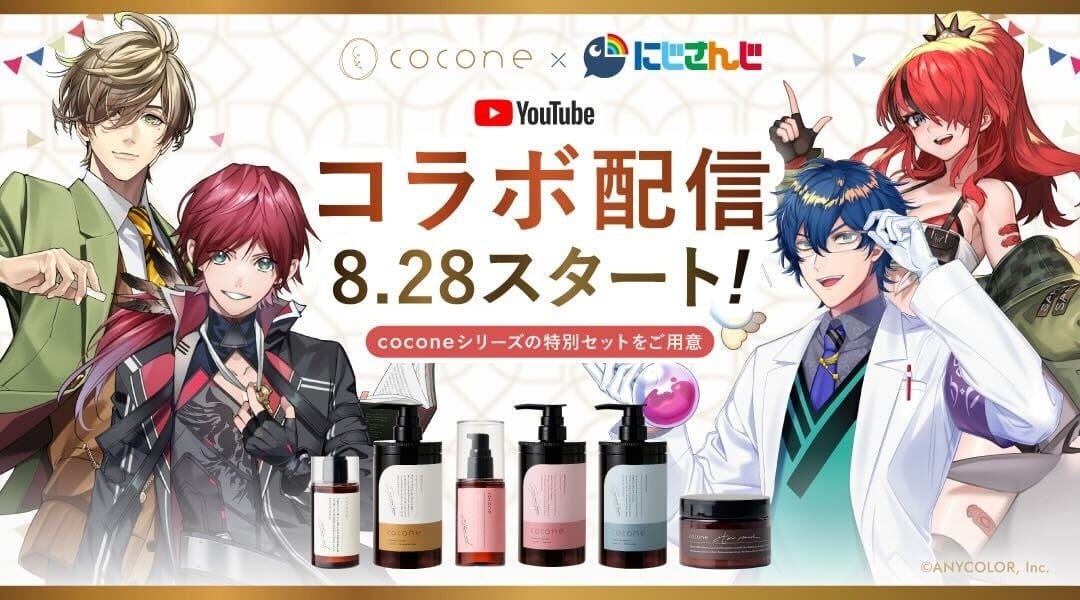 株式会社はぐくみプラスが展開するヘアケアブランド『cocone』は、ANYCOLOR株式会社が運営するVTuberグループ『にじさんじ』とのコラボレーション企画の一環として、2025年8月28日(木)19時より、にじさんじ所属のエデン組(ローレン・イロアス、レオス・ヴィンセント、オリバー・エバンス、レイン・パターソン)によるYouTubeライブ配信を実施したとのことです。