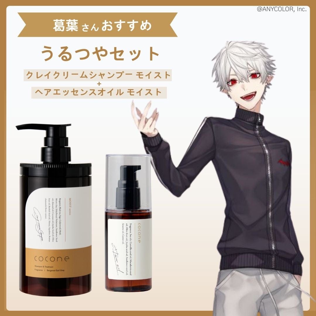 配信では、叶と葛葉がそれぞれセレクトしたcoconeヘアケアシリーズ特別セットが紹介された。叶は「集中補修セット」としてクレイクリームシャンプー・リペアとモイスチュアリペアヘアマスクを、葛葉は「うるつやセット」としてクレイクリームシャンプー・モイストとヘアエッセンスオイル・モイストを推薦した。