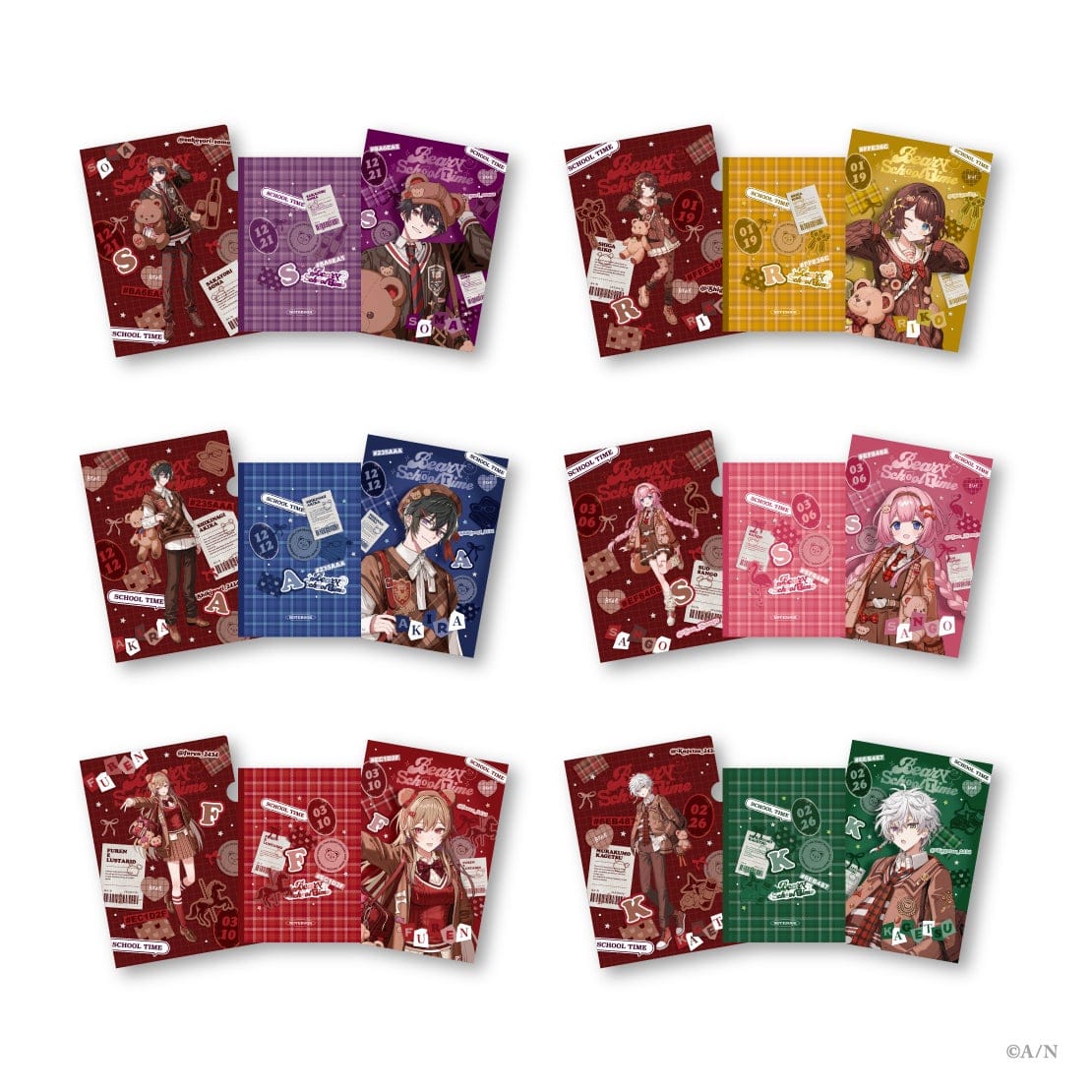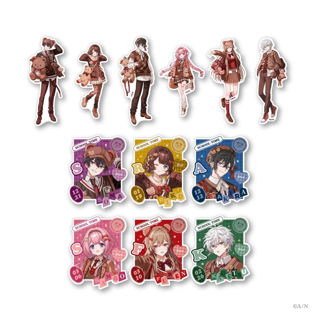 にじさんじから、くま×制服がテーマのグッズ「Beary School Time」の販売が決定!参加ライバーは、酒寄颯馬、司賀りこ、四季凪アキラ、周央サンゴ、フレン・E・ルスタリオ、叢雲カゲツの6名。