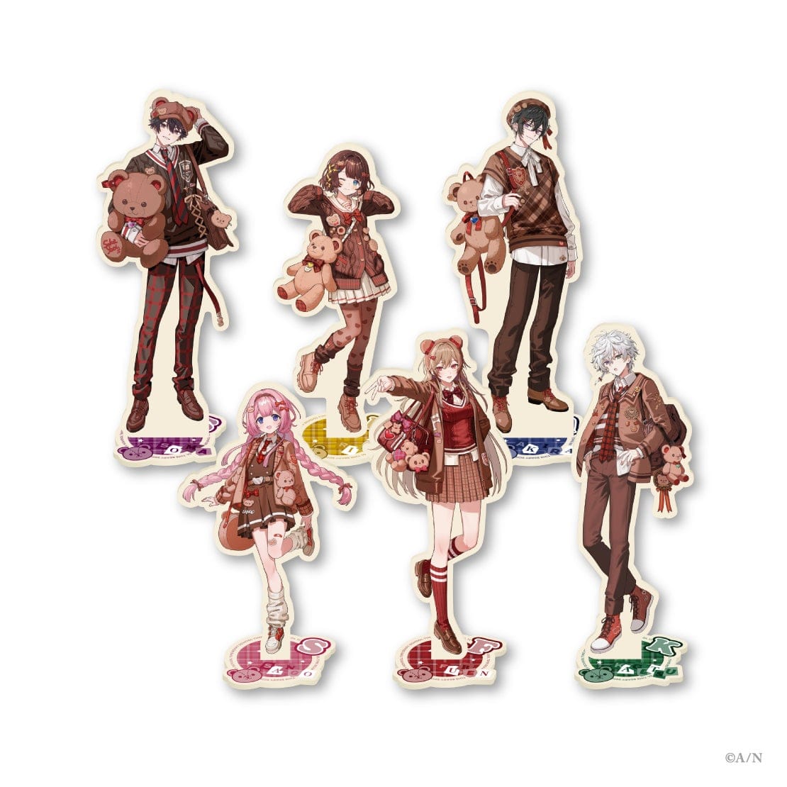 今回のグッズはくま×制服をテーマとしており、酒寄颯馬、司賀りこ、四季凪アキラ、周央サンゴ、フレン・E・ルスタリオ、叢雲カゲツの6名のライバーが参加しています。