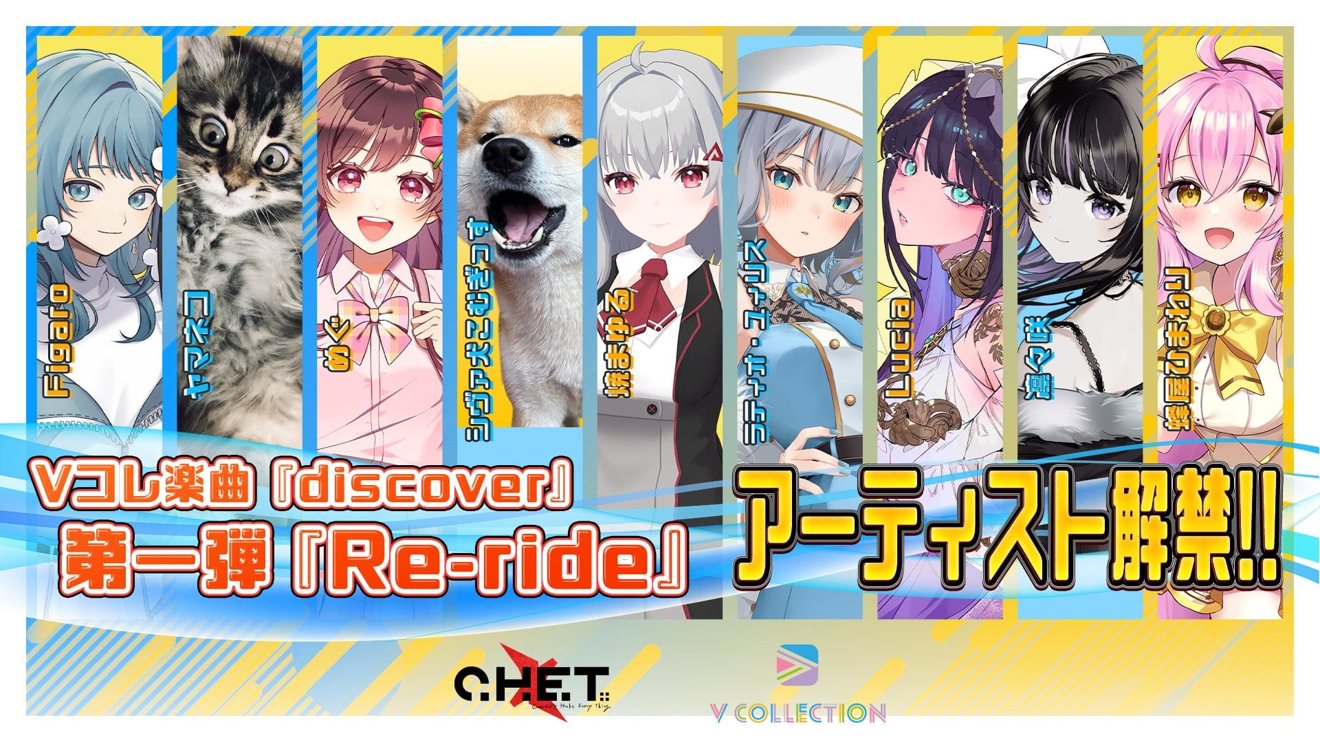 「誰もがアーティストになれる」というパーパスのもと、ユーザー参加型で新たなクリエイティブフォーマットを生み出すインキュベーション組織「 C.H.E.T.」から誕生した”V Collection(Vコレ)×えのぐ”楽曲第一弾「discover / えのぐ feat. C.H.E.T.」のRe-rideアーティストを公開いたしました。