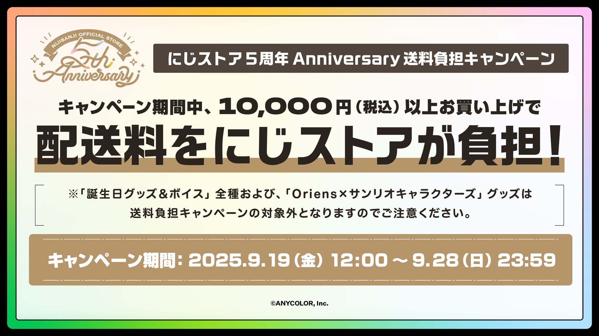 日頃のご愛顧に感謝するとともに、にじさんじオフィシャルストア5周年を記念して2025年9月19日(金)12時から「にじさんじオフィシャルストア」にて、新規グッズの販売や送料負担キャンペーンを開催いたします。