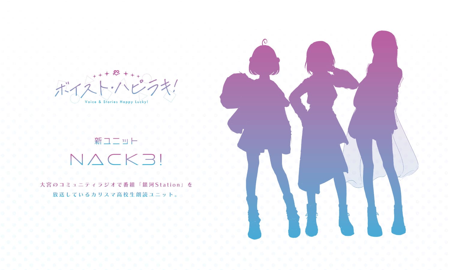 「バンドリ!」と「D4DJ」のストーリー原案・中村航氏が手掛けるメディアミックスプロジェクト「ボイスト」の新シリーズ「ボイスト・ハピラキ!」において、新ユニット「NACK3!」のゲスト出演が決定したとのことです。