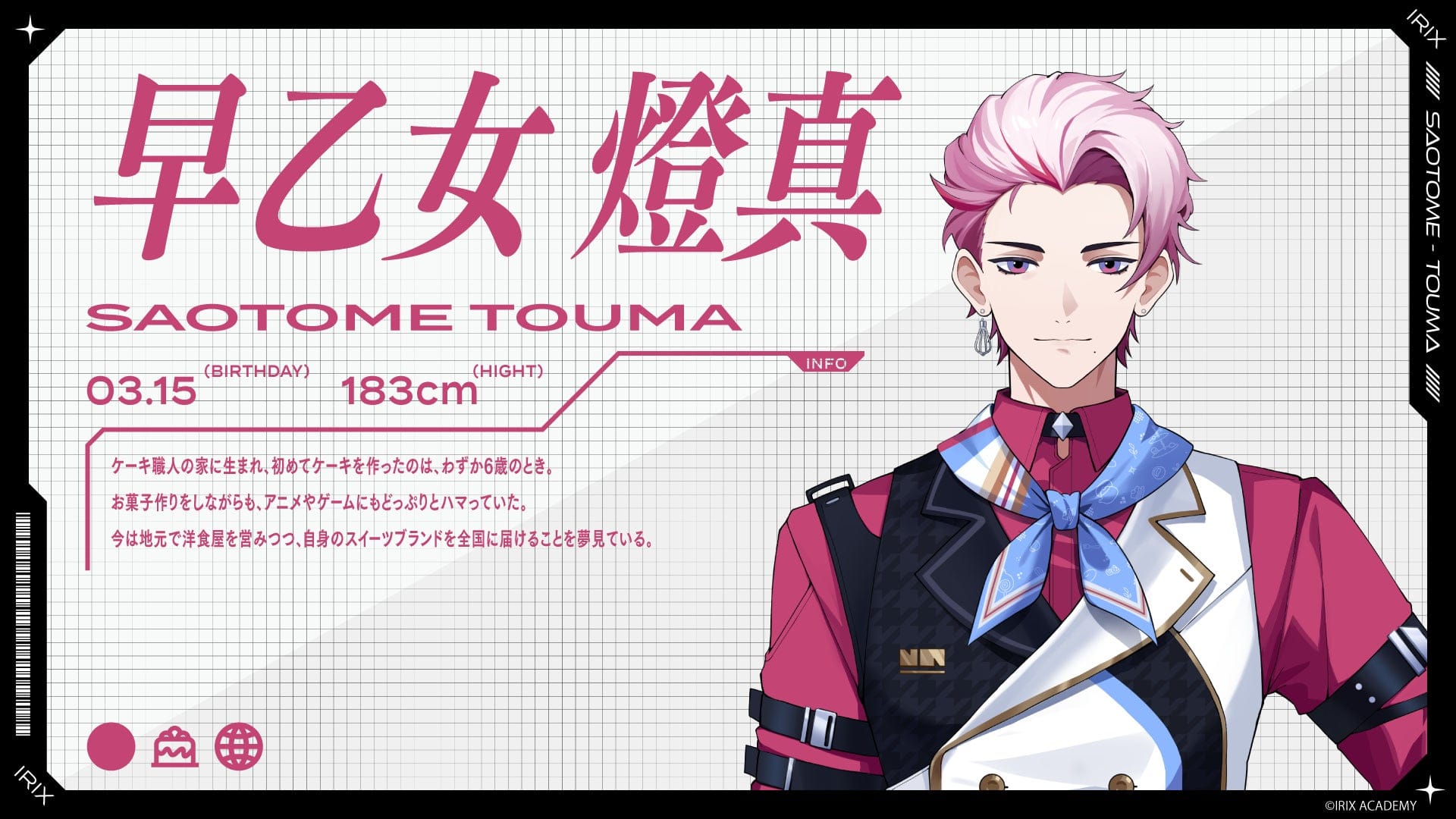 『イリクス学園』は昨年より始動した新規VTuberプロジェクトで、各メンバーは個性的なバックストーリーと特徴を持っています。FPSゲームにのめり込む瑞木ゆき、ケーキ職人を夢見る早乙女燈真、気まぐれな占い師の久遠星那、スポーツ万能で人望厚い千影丸の4名がデビューします。