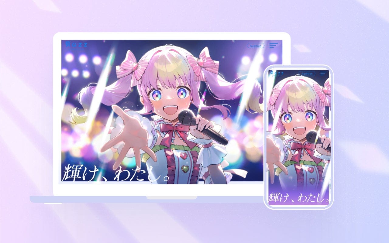 Razzプロダクション公式キャラクター「甘愛ラズベリー」を、オフィシャルサイトのトップに掲げ、ライバーが人生史上最高に輝いている瞬間を表現しています。