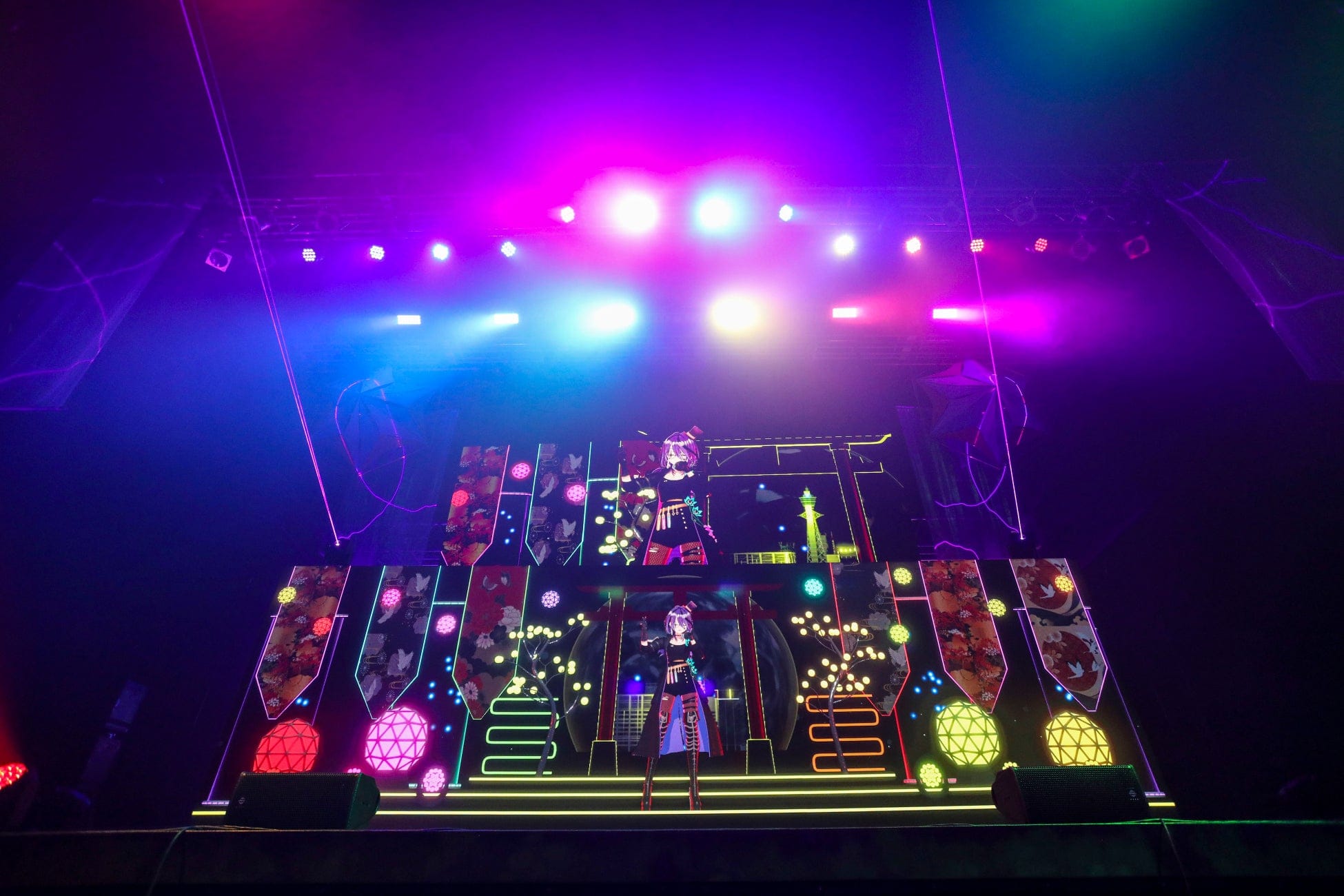 昼の部では、心斎橋を拠点とする「心斎橋演芸高校DJ部(電音部シンサイバシエリア)」のオープニングで幕を開け、エイベックスプロデュースの「鈴鳴すばる(まりなす)、個人勢VTuberの「凪乃ましろ」、ロック系VSingerの「松永依織」らが出演。トリを務めたバーチャルガールズHIPHOPユニット「KMNZ」は、「通天閣」「たこ焼き」など大阪らしいキーワードをラップに織り込み、銀テープが舞い散る中で昼の部を華やかに締めくくりました。