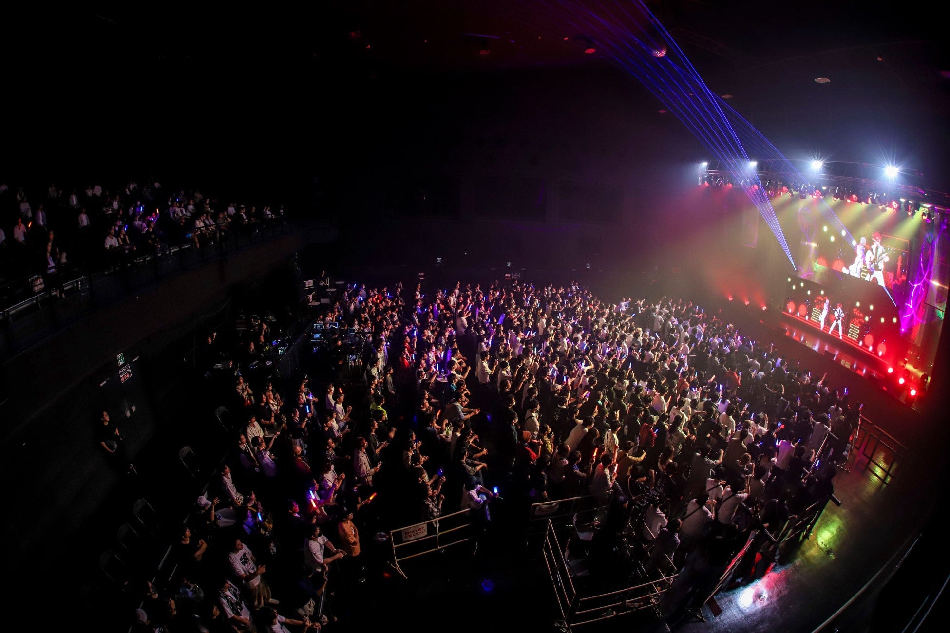ステージでは巨大LEDパネルにアーティストを等身大で表現し、観客席から見たときに目の前でパフォーマンスしているリアル感を演出。ペンライトの色や曲に合わせた手拍子、コールアンドレスポンスなど、観客とアーティストが作り上げるライブ空間は、従来のライブハウスと変わらない臨場感を生み出しました。