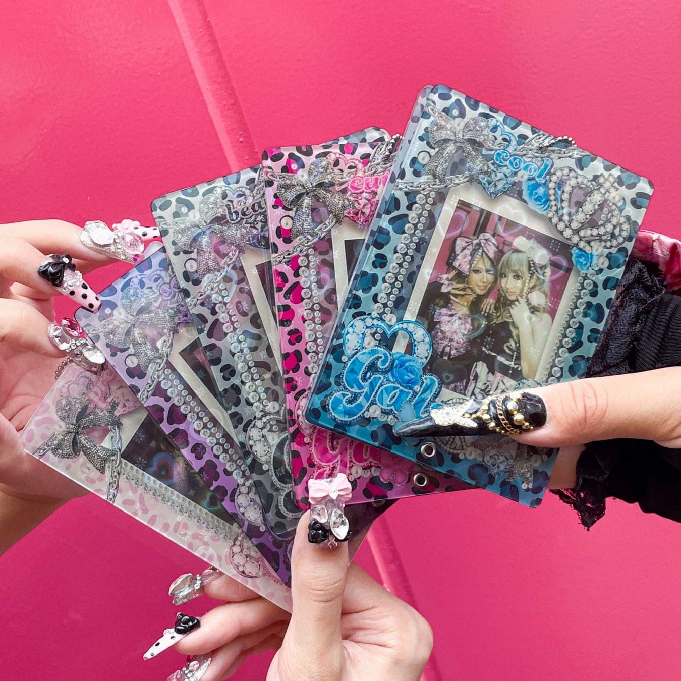 平成ギャル感満載のヒョウ柄アクリルフレーム。ハートのホログラムがキラリと輝いてとってもキュートです♪