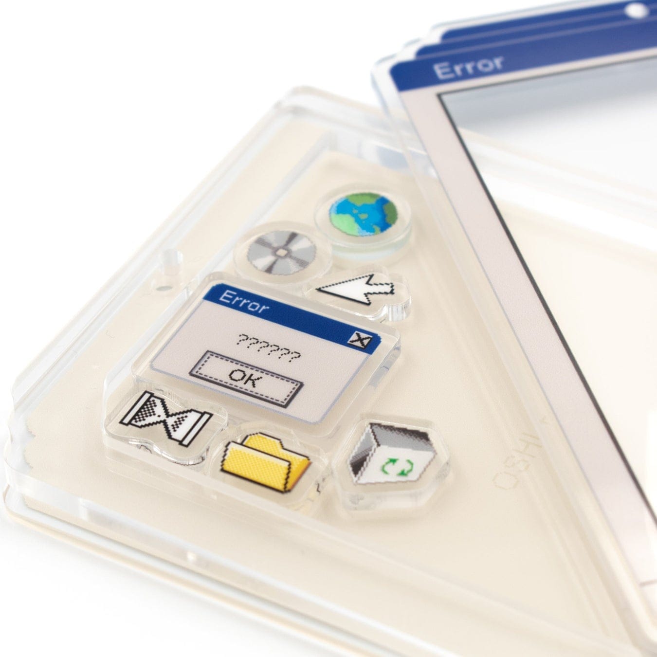 あの頃のPCウィンドウをイメージしたレトロかわいいアクリルフレーム。ドット絵な雰囲気が、ゲーム・Vtuberなどデジタル、インターネットなイメージの推しがいるオタクにおすすめ!