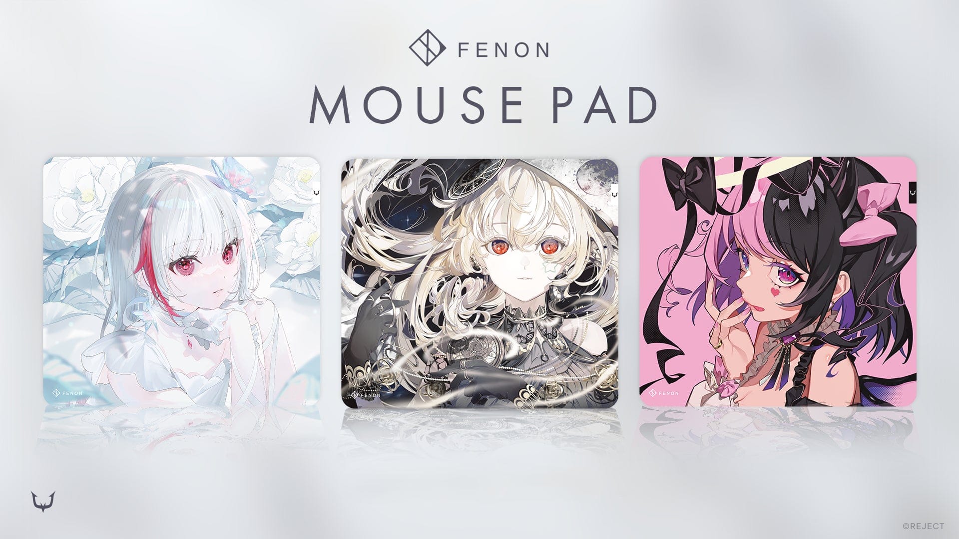 REJECT GEARの各種デバイス(VTuberコラボマウスパッド、マウス、アケコン ほか)を展示・試遊いただけます。既存製品に加え、新製品・開発中モデルの先行体験も実施予定です。