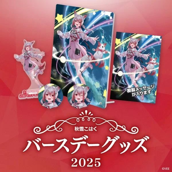 株式会社ソニー・ミュージックエンタテインメントは10月1日、バーチャルタレント育成&マネジメントプロジェクト「VEE」の公式オンラインショップ「VEE Official Shop」にて、所属バーチャルタレント秋雪こはくのバースデーグッズの受注販売を開始した。