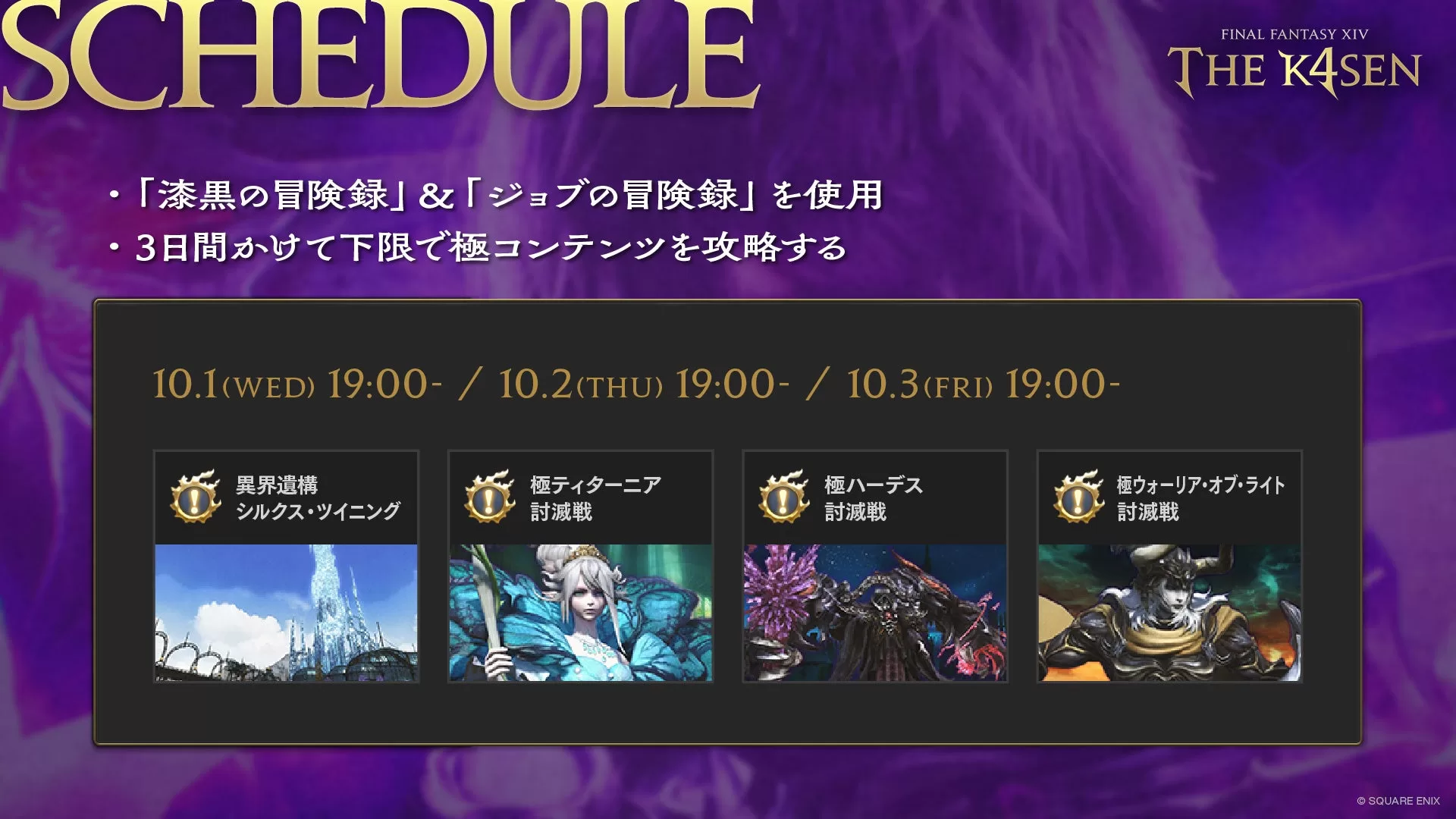 k4senがFF14で3日間配信イベント「The k4sen」第41回を10月1日から開催