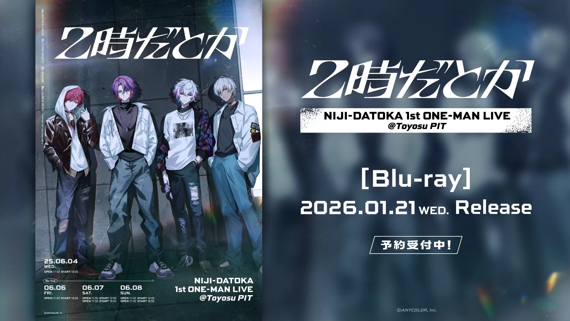 ANYCOLOR株式会社が運営するVTuberグループ「にじさんじ」に所属する渡会雲雀、不破湊、イブラヒム、ローレン・イロアスからなるバンド「2時だとか」の1stワンマンライブBlu-rayが2026年1月21日に発売されることが発表された。