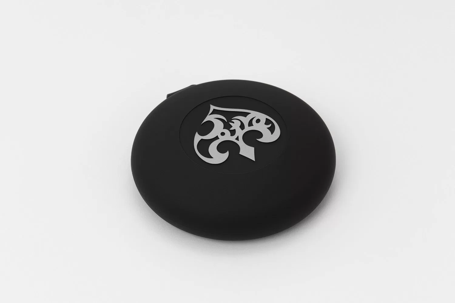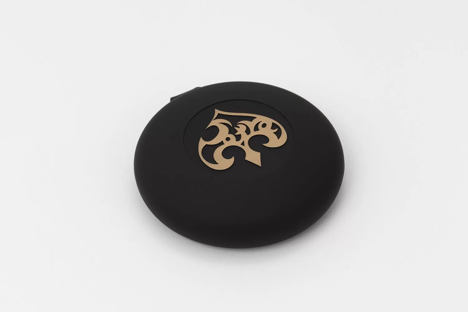 また、同梱のシリコン製ケースは、ケーブルを丸めて手軽に収納することができます。イヤホン本体はドーム状の薄いシリコンの蓋でソフトに固定され、コンパクトで持ち歩きにも便利。ケースの蓋にもパトラさんオリジナルのクローバーマークを添えました。