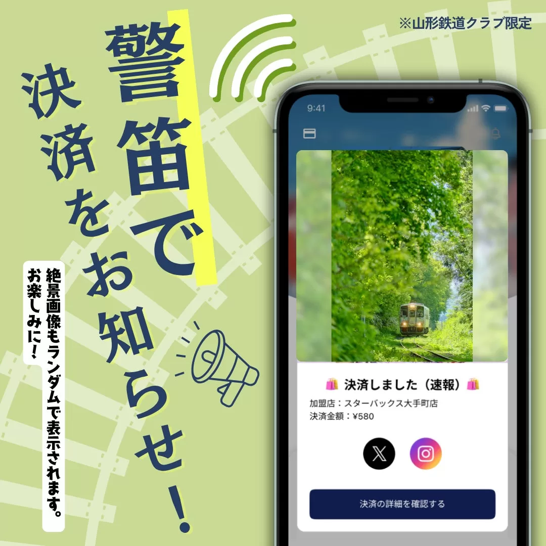 山形鉄道フラワー長井線をデザインした“推し鉄”クレジットカード「山形鉄道カード」では、決済音に警笛が鳴り響く鉄道ファン向け通知が登場。音声とともに、沿線の鉄道遺産や四季折々の景観を収めた絶景写真がランダムで表示されます。
