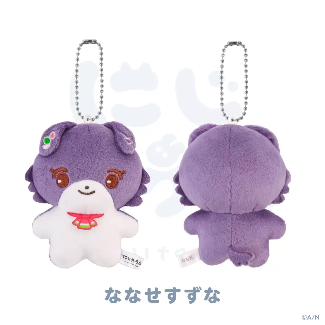 「にじたうん 2ちょうめ」グッズは、全5種類のぬいぐるみマスコットで、各2,000円(税込)で販売される予定だ。サイズは約W85mm×H110mm×D50mmで、素材はポリエステルと鉄を使用しているとのこと。