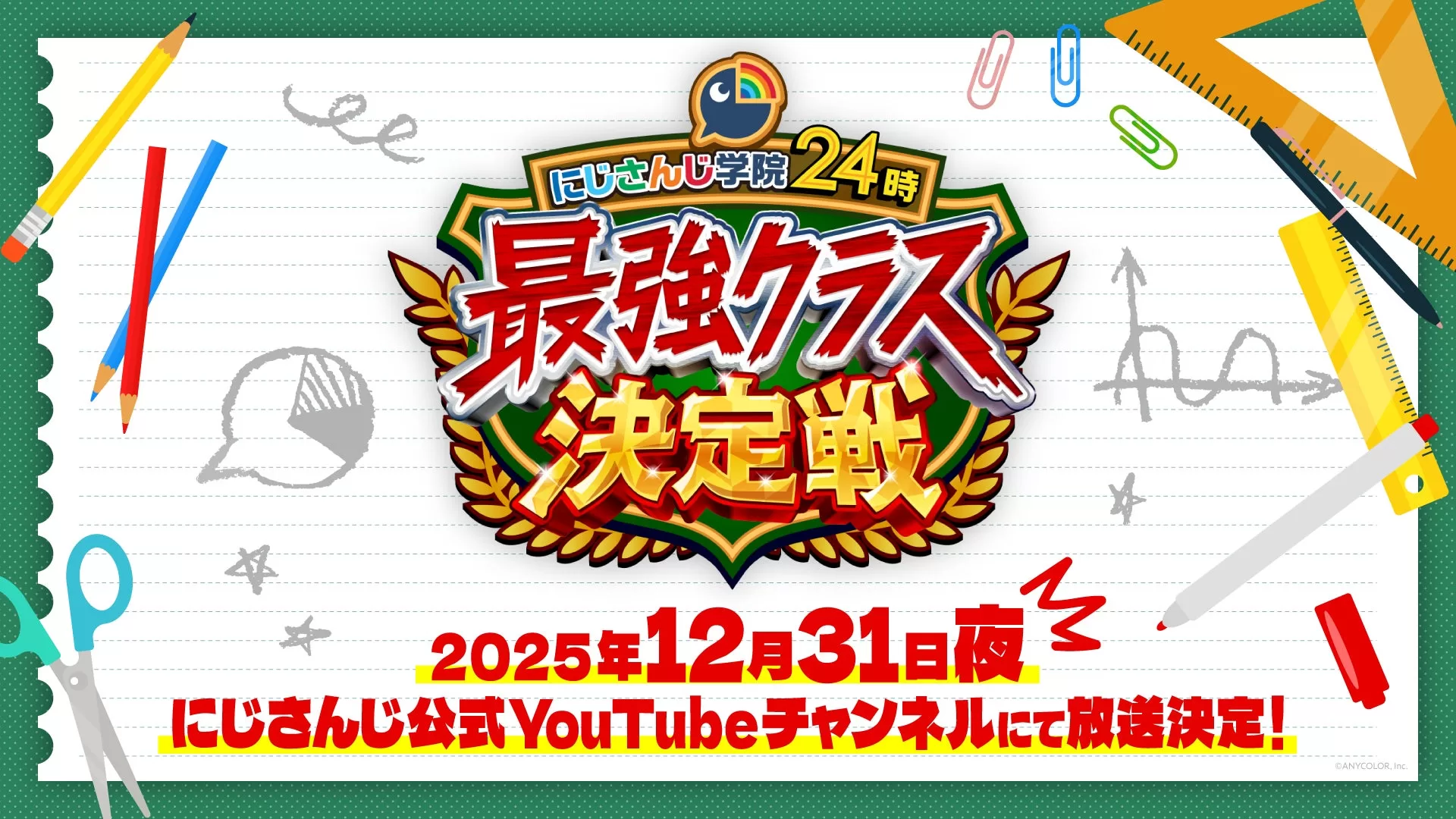 ANYCOLOR株式会社が運営するVTuberグループ「にじさんじ」は、2025年12月31日に年末バラエティ特番「にじさんじ学院24時 最強クラス決定戦」と年越しカウントダウンライブ「NIJISANJI COUNTDOWN LIVE “CROSSING TONES”」を配信すると発表した。