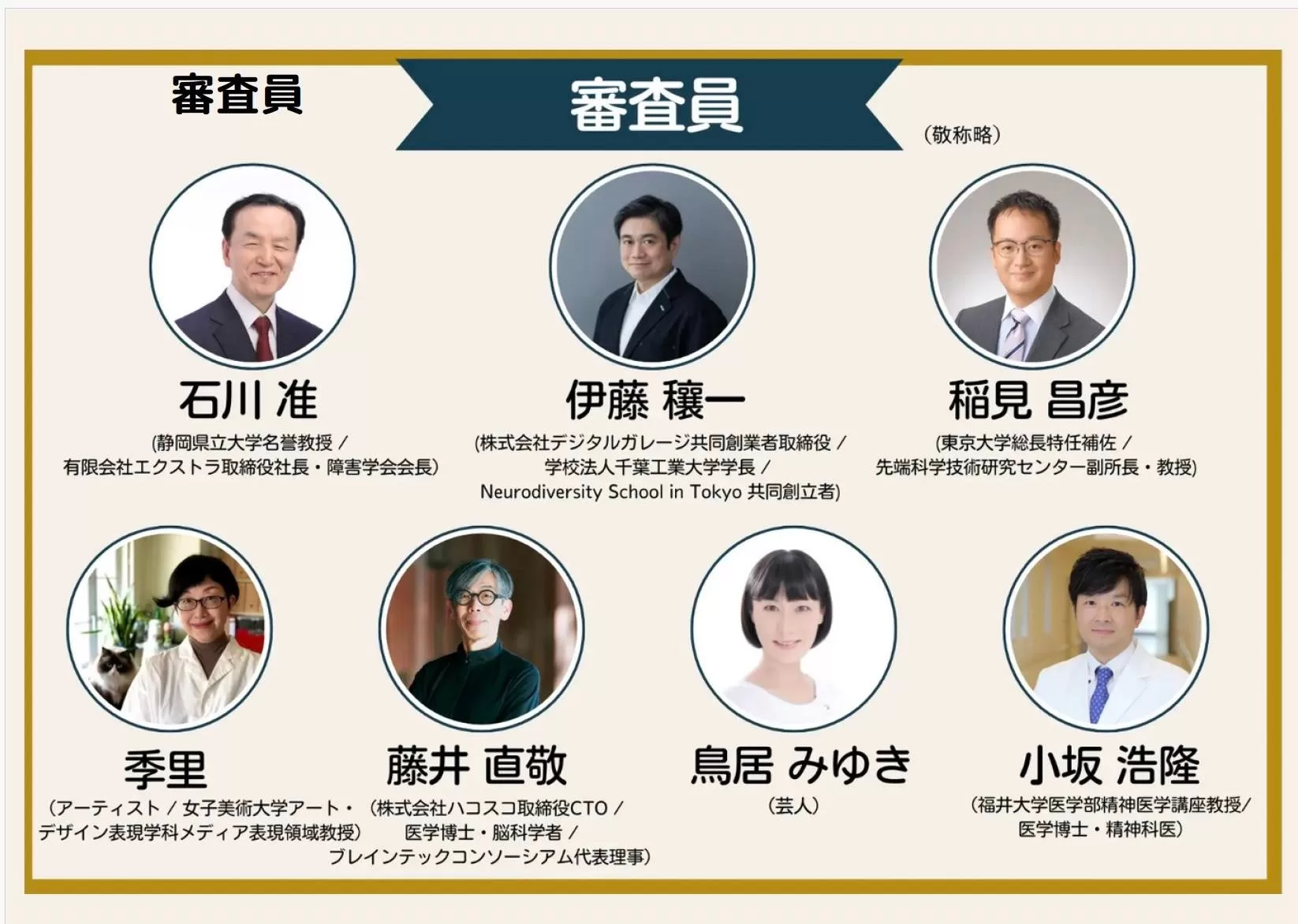 審査員 (敬称略) 石川准/静岡県立大学名誉教授/有限会社エクストラ取締役社長/障害学会会長
