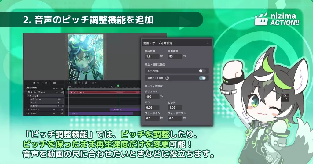 2. 音の高さやスピードを自在に変えられる、音声のピッチ調整機能を追加!