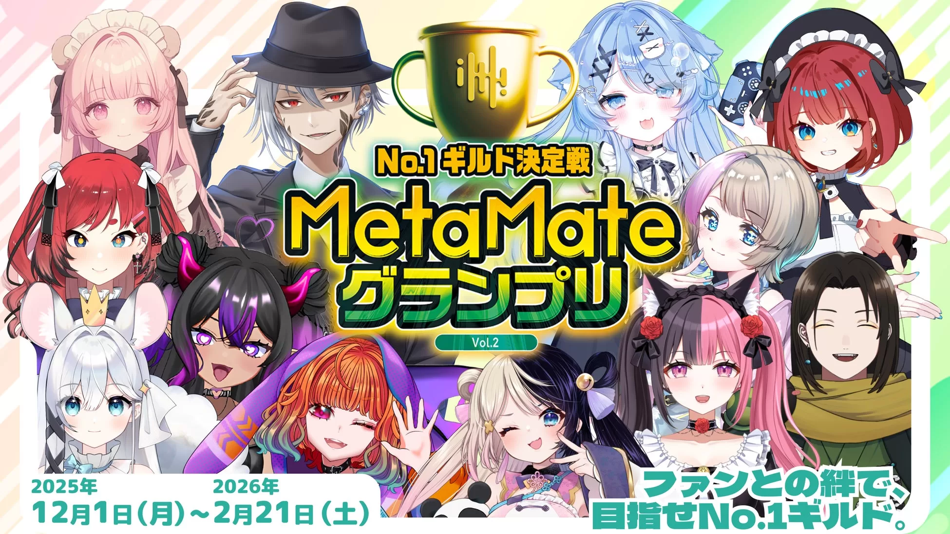 MetaMateグランプリが帰ってくる...! 数々のドラマを生んだMetaMateグランプリVol.1を経て、MetaMateグランプリVol.2が開催決定。 MetaMeギルドでファンとのつながりを深め、No.1ギルド(=MetaMat...