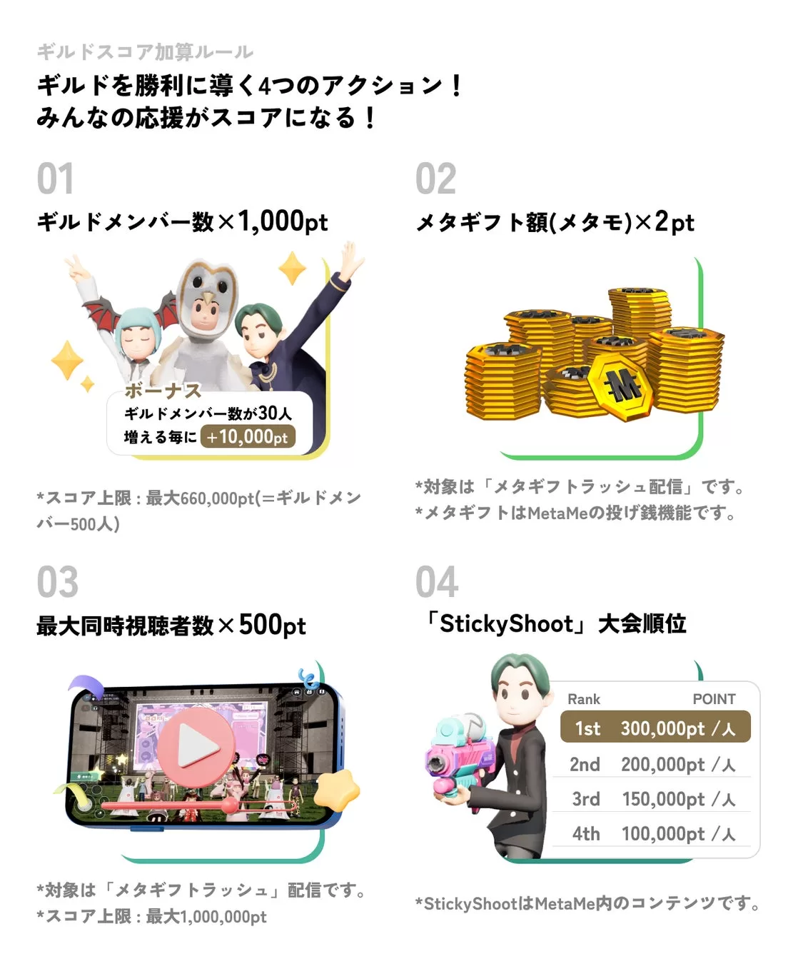 このステージでは、配信中に贈られた「メタギフト」がギルドスコアを大きく左右します。