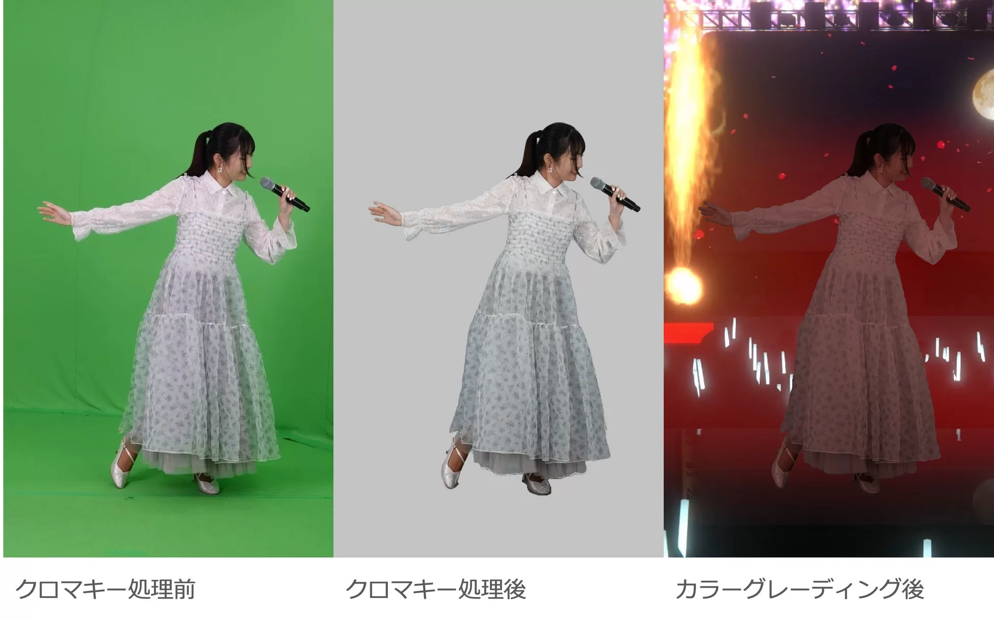 近年、VTuberをはじめとするバーチャルキャラクターと、リアルなアーティストやタレントとのコラボレーション映像、XRライブなど、実写とCGを組み合わせた映像コンテンツの需要が急速に高まっています。しかし、従来の制作プロセスでは、撮影後にクロマキー※1合成、CGへの照明の合わせ込み、および全体のカラーグレーディング※2など、高度な技術と長時間の煩雑な手作業が必要とされ、制作時間とコストが増大する要因となっていました。