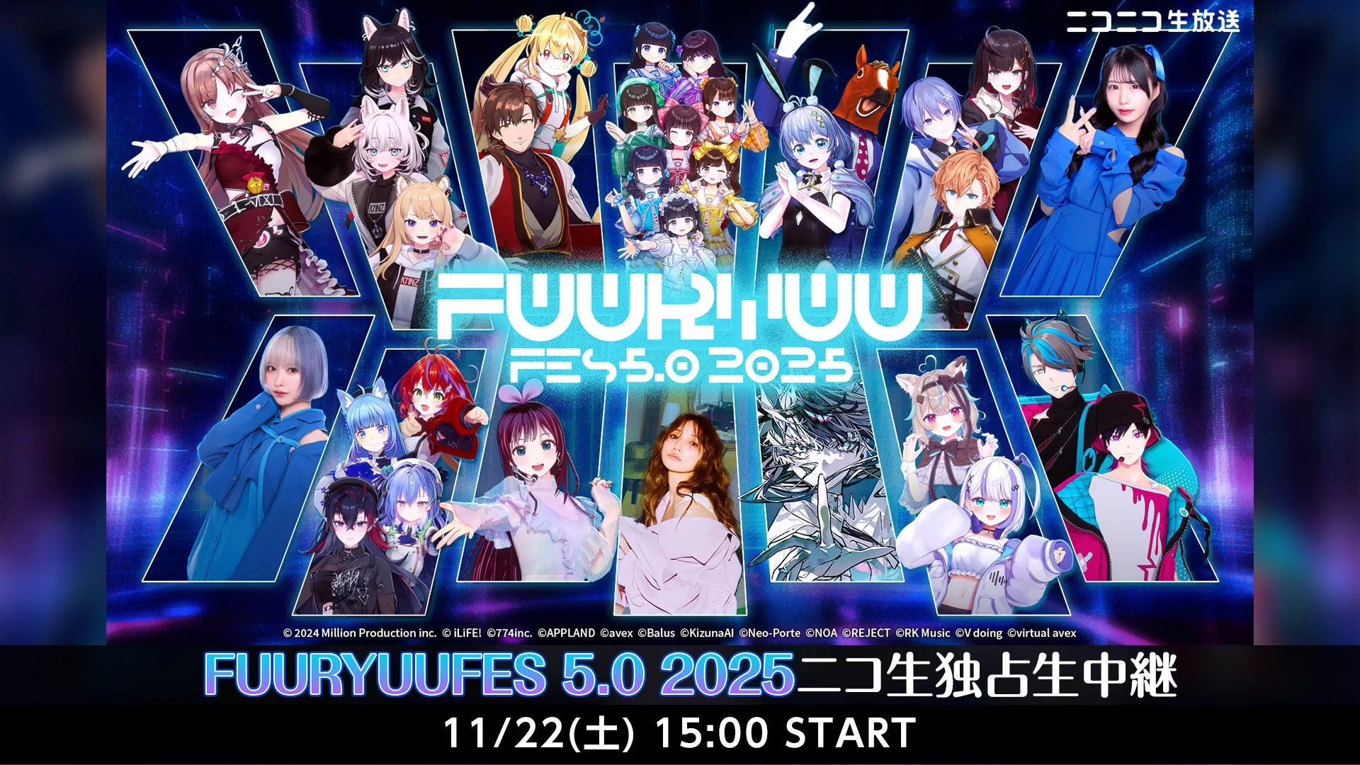 ニコニコ生放送は、2025年11月22日(土)にぴあアリーナMMで開催されるVTuberフェスティバル「FUURYUUFES 5.0 2025」の独占生中継を実施すると発表した。