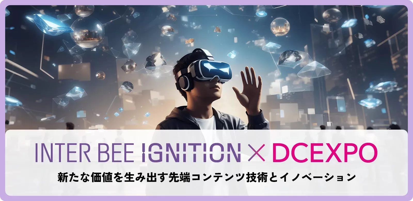 「INTER BEE IGNITION×DCEXPO」は、コンテンツ産業とエンターテイメント産業における新たなビジネス創出と活性化を目指して、Inter BEE内で実施されている特別企画です。本展では、新たな市場を創り出したばかりの、可能性を秘めた最先端のコンテンツ技術を体験できる展示のほか、世界の第一線で活躍する専門家、研究者、クリエイターによるコンファレンスやデモを実施します。