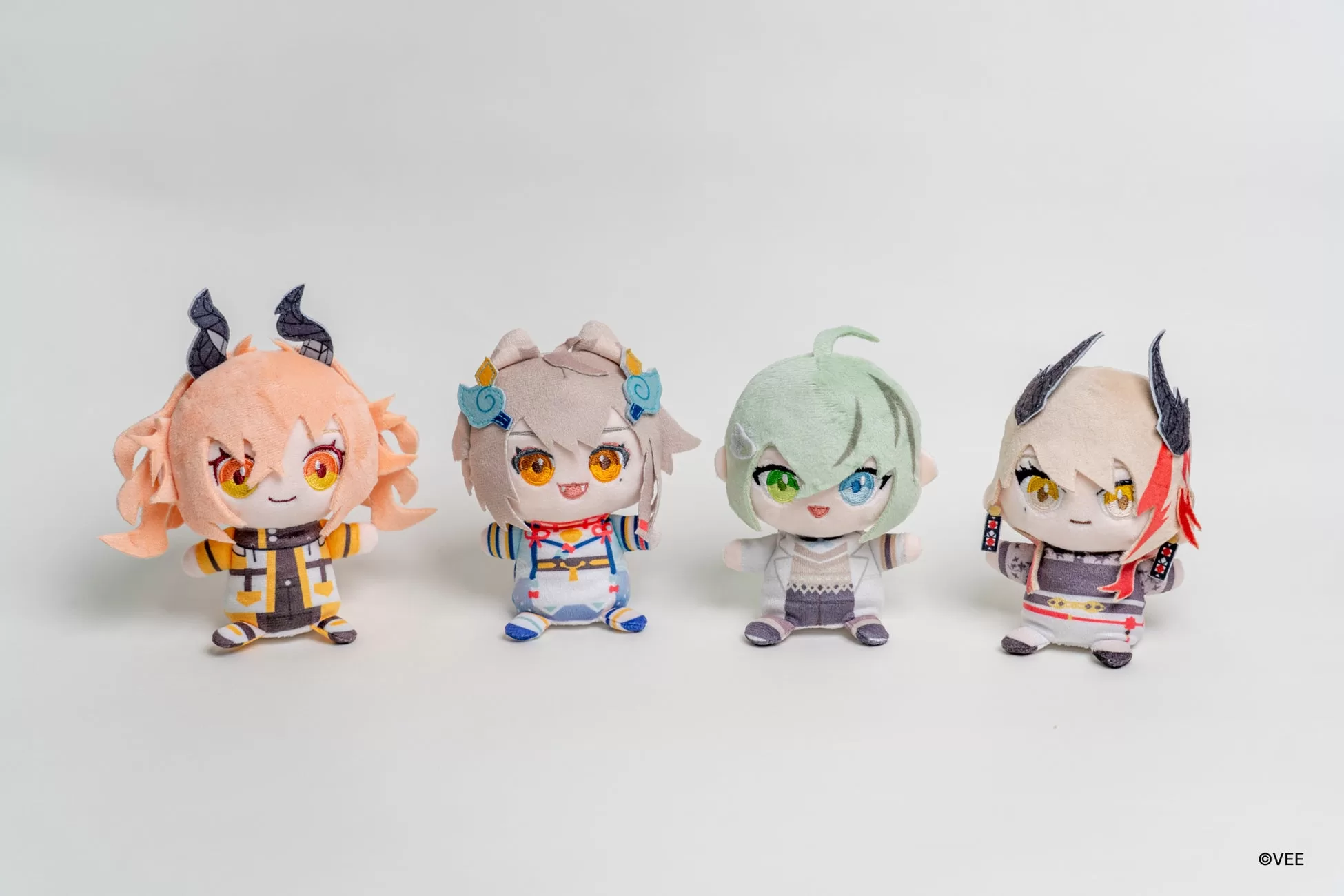本商品は、VEE所属タレント4名の個性や魅力をそのまま詰め込んだ“手のひらサイズ”のぬいぐるみパペットで、ふかふかの素材感と指を入れて動かせる仕様です。
