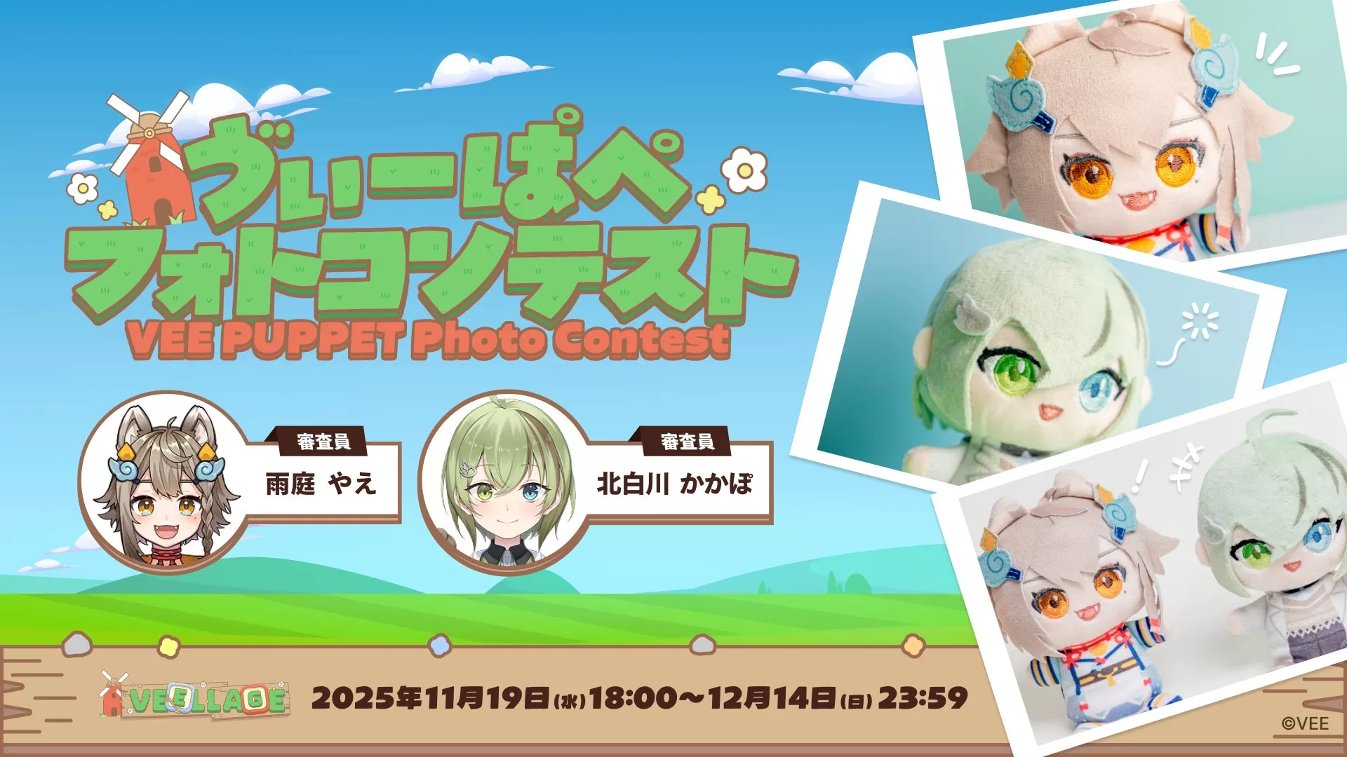 また、第一弾販売を記念した「ゔぃーぱぺ フォトコンテスト」が2025年11月19日から12月14日まで開催される。購入したパペットを撮影した写真をVEE公式コミュニティ「VEELLAGE」に投稿すると、雨庭やえと北白川かかぽがお気に入りの作品を選出し、特別配信にて発表する予定だ。