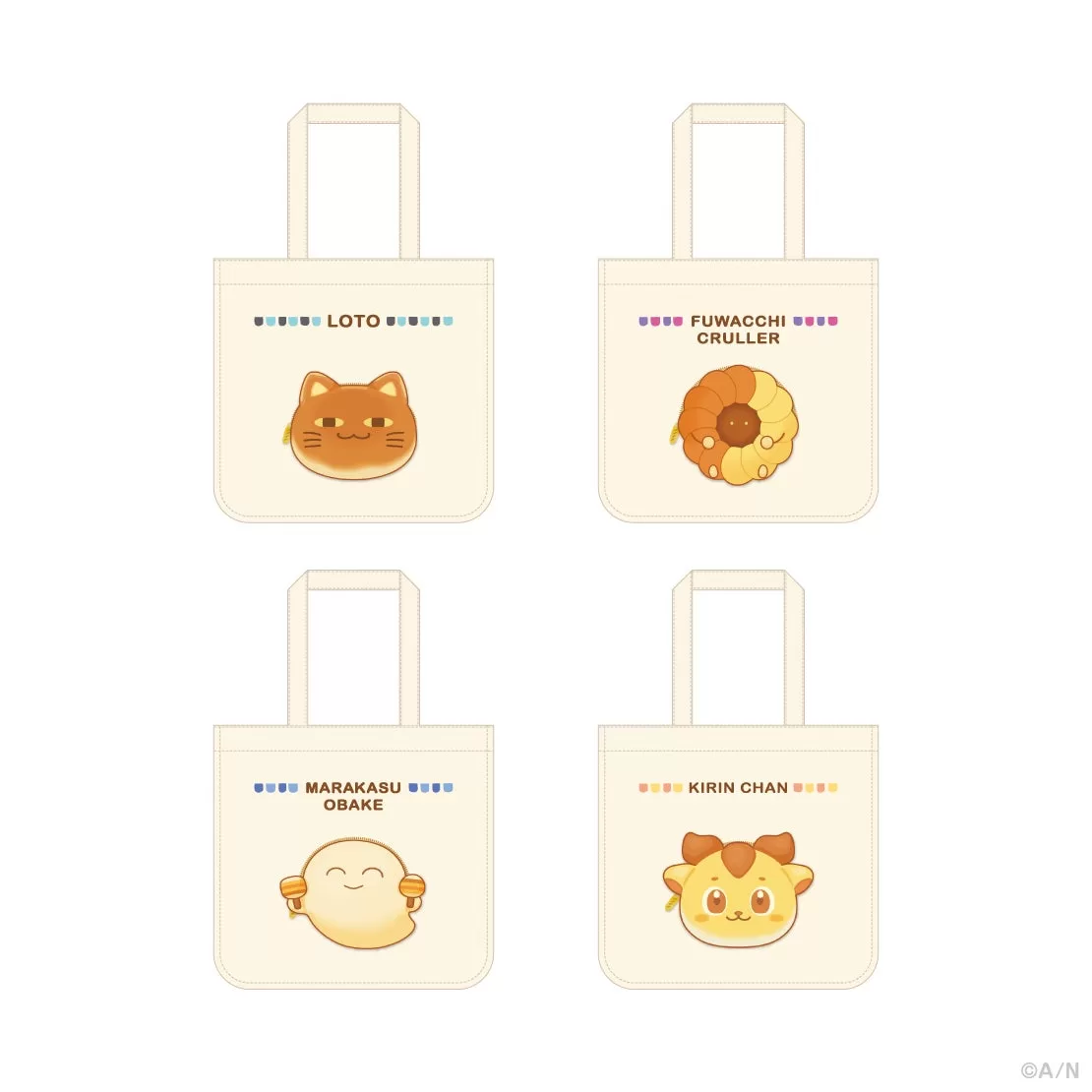 にじさんじから、「ゆかいなパンやさん」グッズの販売が決定!参加マスコットは、叶の「ロト」、不破湊の「フワッチクルーラー」、イブラヒムの「マラカスおばけ」、宇佐美リトの「キリンちゃん」の4匹。4匹がはじめたパンやさんの世界をお楽しみください!