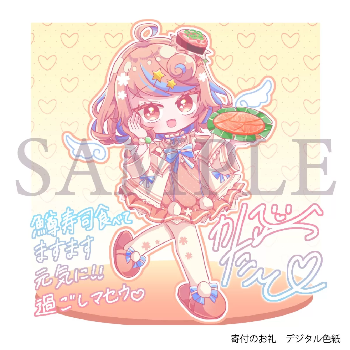 寄付サイトよりふるさと納税をした方へ寄付のお礼として今回限りの片琴姫のデジタル色紙(サイン・メッセージ入り)とステッカーを配布いたします。