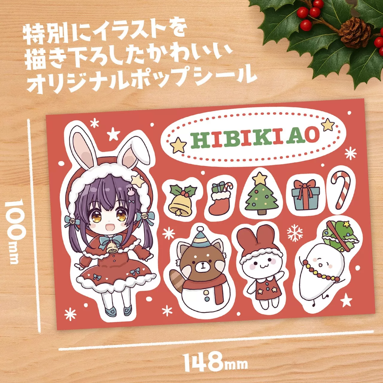 ケーキには、響木アオさんが今回のコラボのために特別に描き下ろしたクリスマスイラストを使用した、「オリジナルポップシール」を同梱しています。