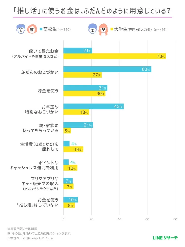 高校生はおこづかいが中心。大学生はアルバイトなどで得た収入を活用し、推し活資金をやりくり。