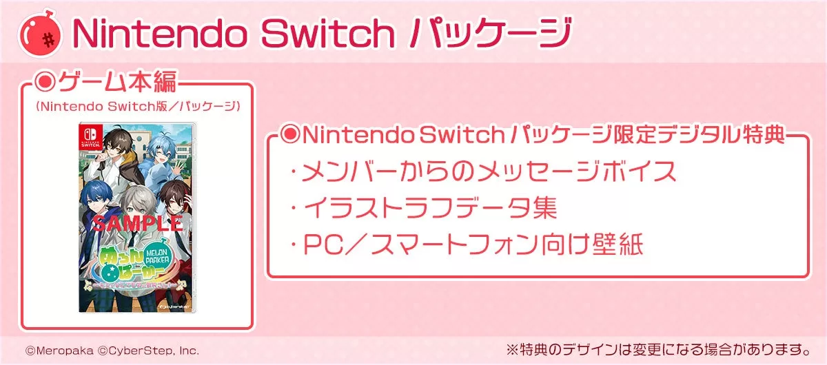ダウンロード版に加えて、限定グッズが同梱された「限定グッズ入りボックス」とゲーム本編とデジタル特典が封入された「Nintendo Switchパッケージ版」も発売となっています。