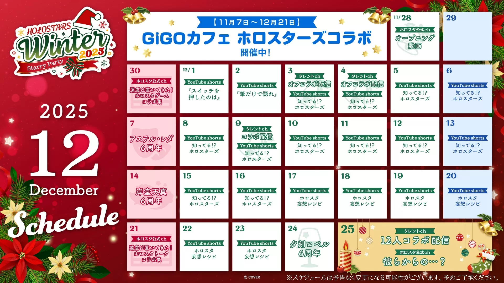 さらに、12月25日(木)はホロスターズ全員が集まって、コラボ配信を実施いたします。
