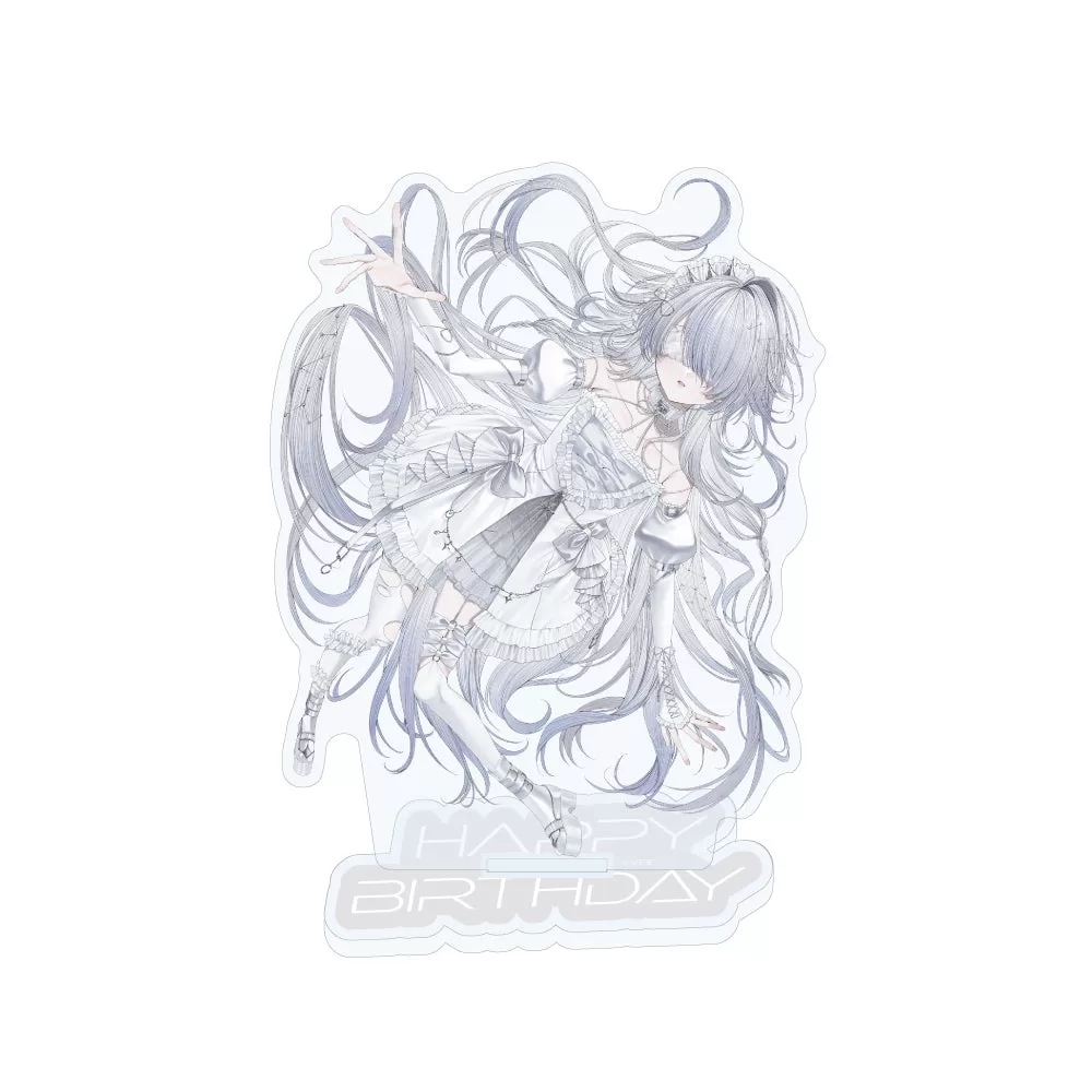 2025年の月白 累のバースデーグッズは、描き下ろしイラストを使用した「アクリルパネル」と「アクリルスタンド」と「缶バッジ」が登場!