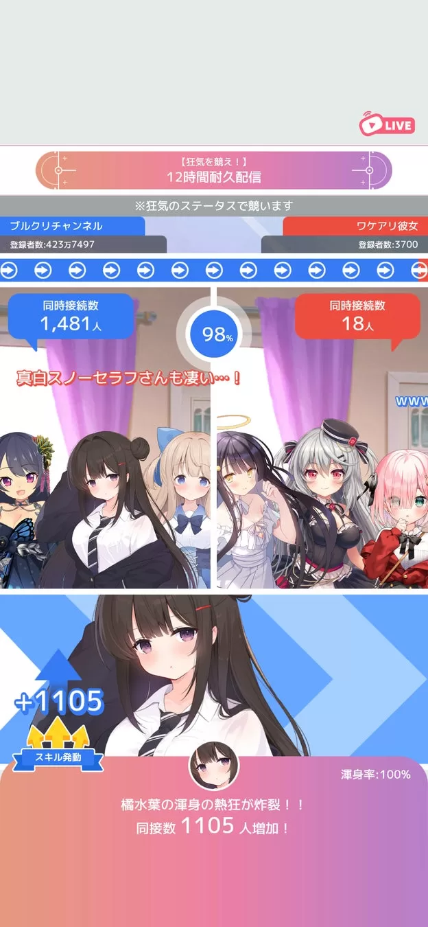 プレイヤーは、こうした個性豊かなVキャラクターたちとコラボ動画を制作したり、ライブバトルでユニットを組んで戦うことができます。