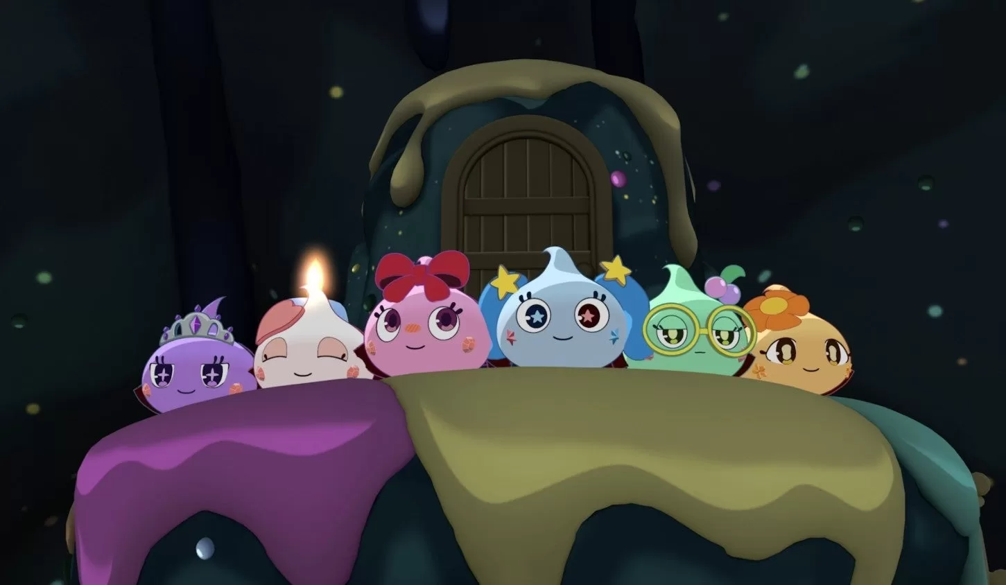 過去に数万種類と産み出されたほっぺちゃんの一例 アニメ『ほっぺちゃん ~サン王国と黒ほっぺ団の秘密~』は、”サン王国”という幻想的なファンタジー世界と、現実世界で自分らしさを見失いかけたOL「歩々(ほほ)」の成長物語を織り交ぜたパラレルストーリー。