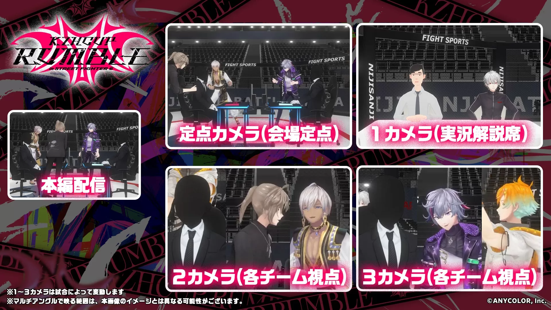 「KZHCUP RUMBLE in STREET FIGHTER 6」は、2025年12月21日(日)に開催された予選(https://www.youtube.com/live/_hSFqbQB_4E)を勝ち上がった全3チーム(BOしたら坊主、サンダーファイアーパンダータツヤー、さんたっち)が、2026年1月23日(金)に会場であるパシフィコ横浜 国立大ホールに参戦し、決勝戦を行います。加えて同日にはエキシビションマッチとして、にじさんじライバー5名とストリーマー5名が対戦するTeam KUZUHA vs Team STREAMERも開催いたします。