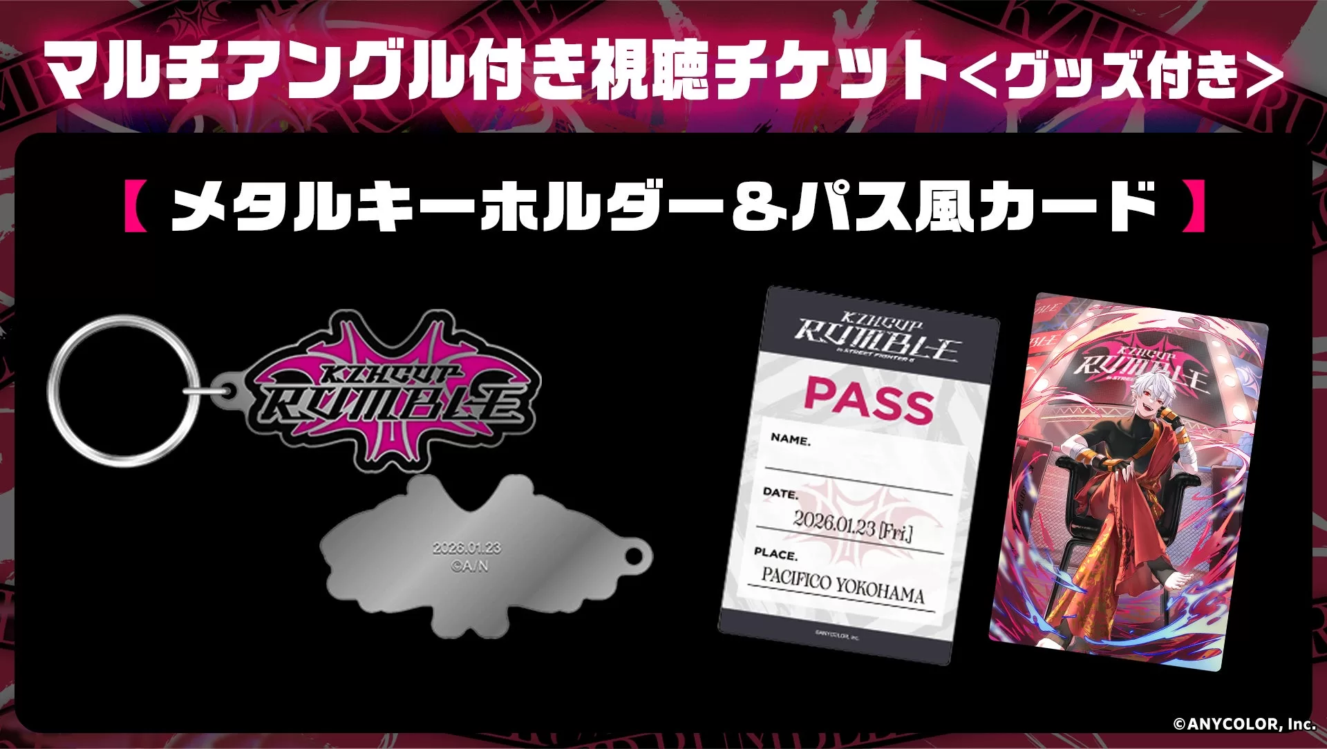 アーカイブ配信は「マルチアングル付き視聴チケット」でのみ視聴可能で、メタルキーホルダーとパス風カードが付属する、グッズ付きチケットも販売いたします。