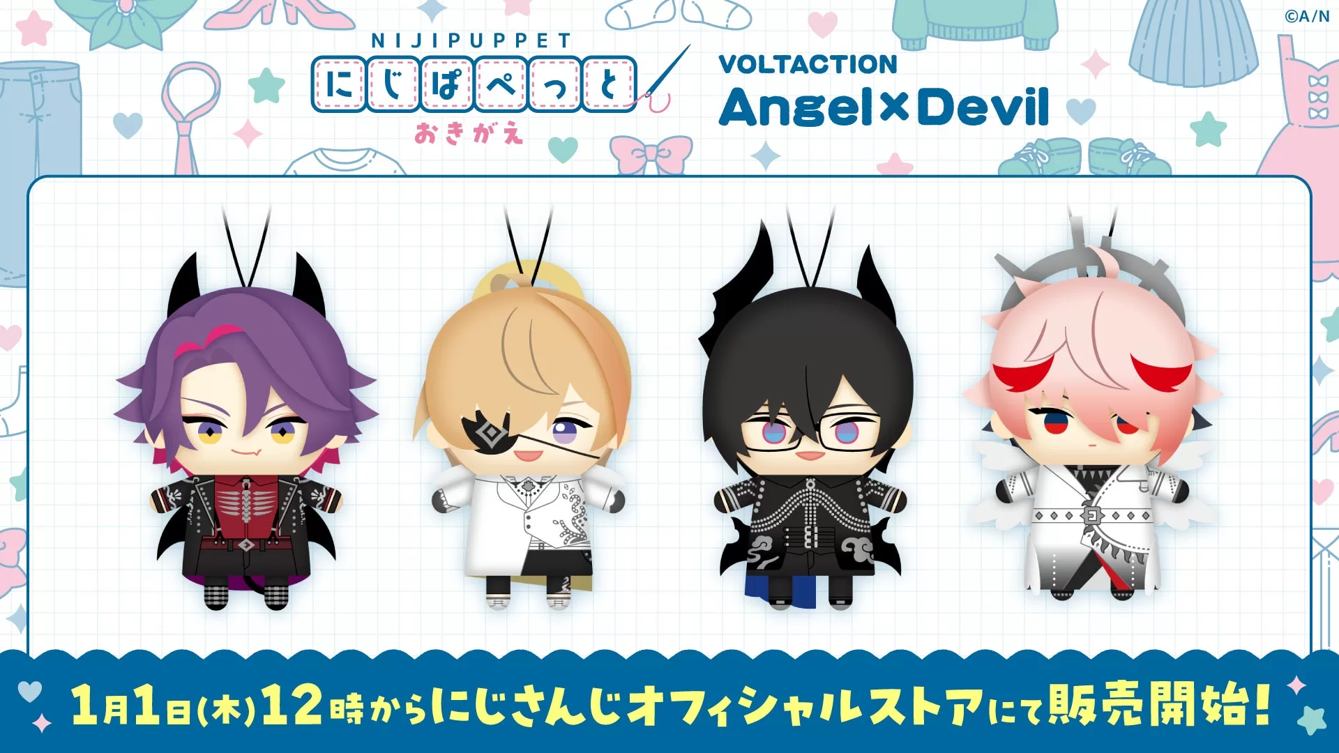 「にじぱぺっと おきがえ ver.VOLTACTION Angel×Devil」グッズは2026年1月1日(木)12時からにじさんじオフィシャルストア(https://shop.nijisanji.jp)にて販売を開始いたします。