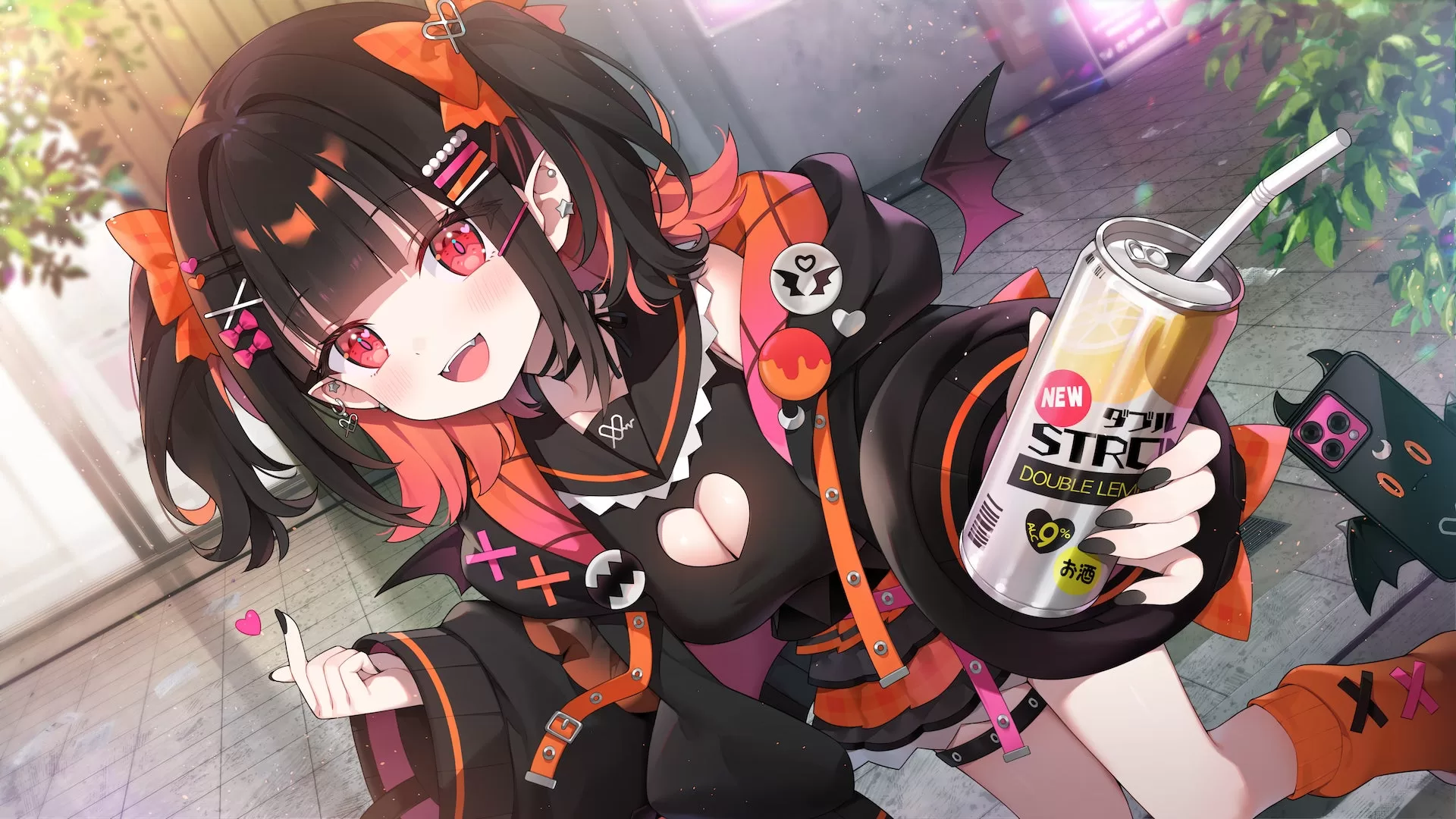 お供は魔界最新機種のスマホ。調べ物や自撮りの際にこき使っている。