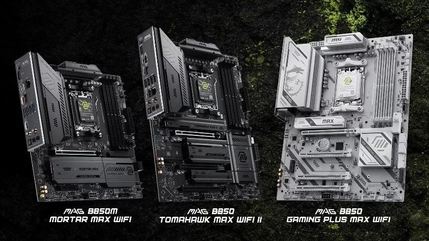 最新のB850 MAXラインナップには、多機能な「MAG B850 TOMAHAWK MAX WIFI II」、パワフルなMicro-ATXモデル「MAG B850M MORTAR MAX WIFI」、そして新たに加わったオールホワイト仕様の「MAG B850 GAMING PLUS MAX WIFI」の3モデルが並びます。各モデルともデザインが一新され、拡張性と自由度がさらに向上しました。